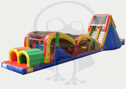 We own the biggest Obstacle Course in the area! The 78’ long Extreme Rush Obstacle Course, is a huge, 2-piece, inflatable obstacle course that is great for larger events. Has push through, crawl through, pop-ups, 19’ rock wall and slide plus much more! Two (2) riders race each other through the obstacles and slide their way to the finish line. This is the Granddaddy of obstacle course so it is great for big events because it can accommodate a large crowd. This gargantuan course can be separated and becomes our 40’ Rush Obstacle Course and 19’ Extreme Dual slide.