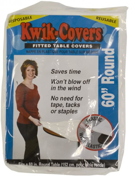The Kwik-Cover is a lightweight, fitted vinyl table cover with specially-designed elastic edging that holds the cover in place, even in the wind. No need for tape, tacks or staples because all banquet Kwik Covers include a 4" self-adhesive tape strip along the length of each side for added support. Kwik Covers are durable enough to be re-used, yet affordable enough to be disposed of after a single use making clean-up a "Snap"! They are available in a variety of colors to fit our 6ft banquet tables. Colors Available: Red, White, Blue, Red Gingham